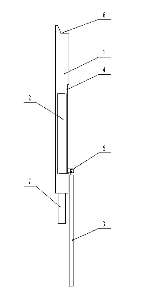 圖中,1-安裝槽,2-頂桿,3-操縱桿,4-推拉槽,5-連接銷,6-切口,7-手柄。