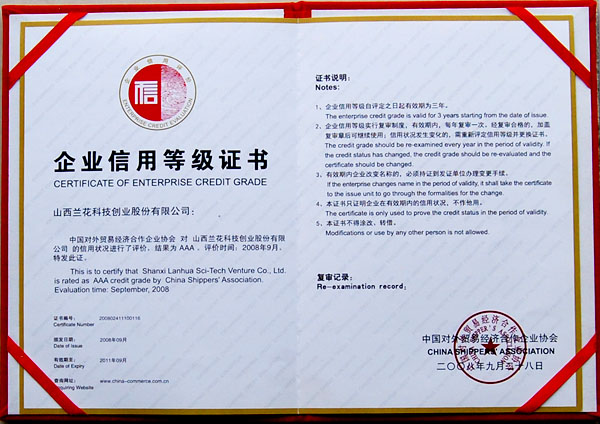 2008年9月,公司企業(yè)信用等級被評價為AAA