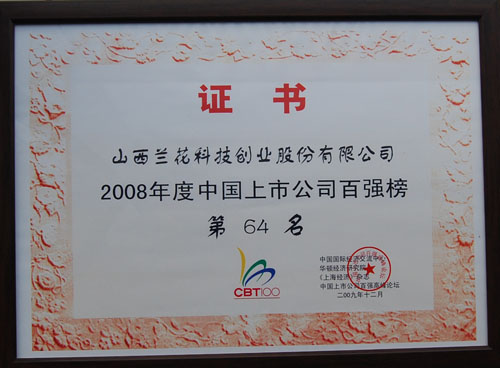 2009年12月,公司入選2008年度中國上市公司百強榜第64名