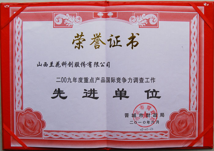 2010年6月,公司榮獲2009年度重點(diǎn)產(chǎn)品國際競(jìng)爭(zhēng)力調(diào)查工作“先進(jìn)單位”