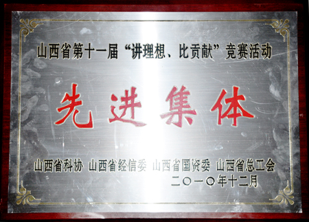 本網(wǎng)訊 近日,經(jīng)各市初評(píng)、推薦和山西省“講、比”競(jìng)賽活動(dòng)領(lǐng)導(dǎo)組評(píng)審,省科學(xué)技術(shù)協(xié)會(huì)、經(jīng)信委、國(guó)資委和總工會(huì)“講、比”競(jìng)賽活動(dòng)領(lǐng)導(dǎo)組審定,公司科協(xié)榮獲山西省第十一屆“講理想、比貢獻(xiàn)”競(jìng)賽活動(dòng)先進(jìn)集體。(技術(shù)中心)