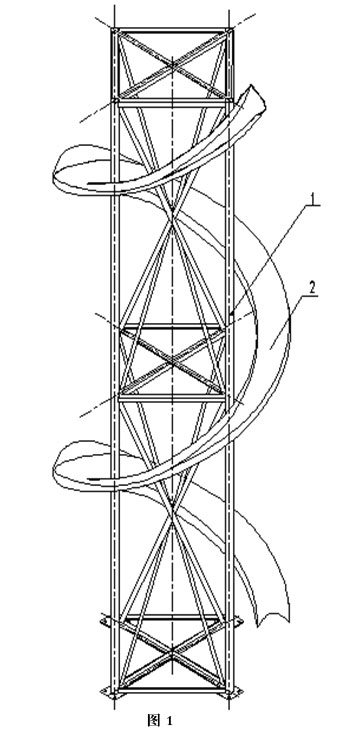 螺旋溜槽沿固定支架外側以外螺旋結構設置,如附圖1所示,該結構一般用于露天或一面靠近建筑體或無建筑體的情況;