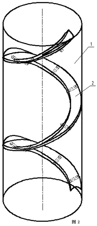 圖中:1-固定支架;2-螺旋溜槽,3-暖氣管。