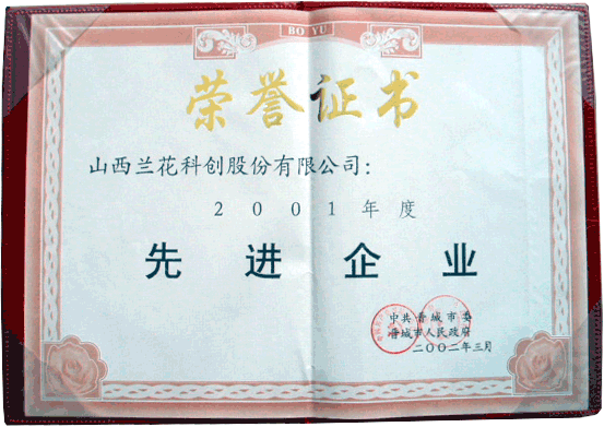 2002年3月,榮獲市委、市政府頒發的2001年度先進企業