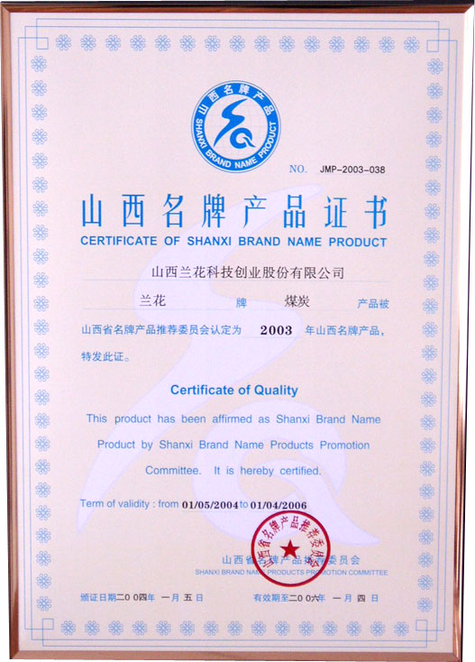 2004年1月,“蘭花”牌煤炭被評為2003年山西名牌產品